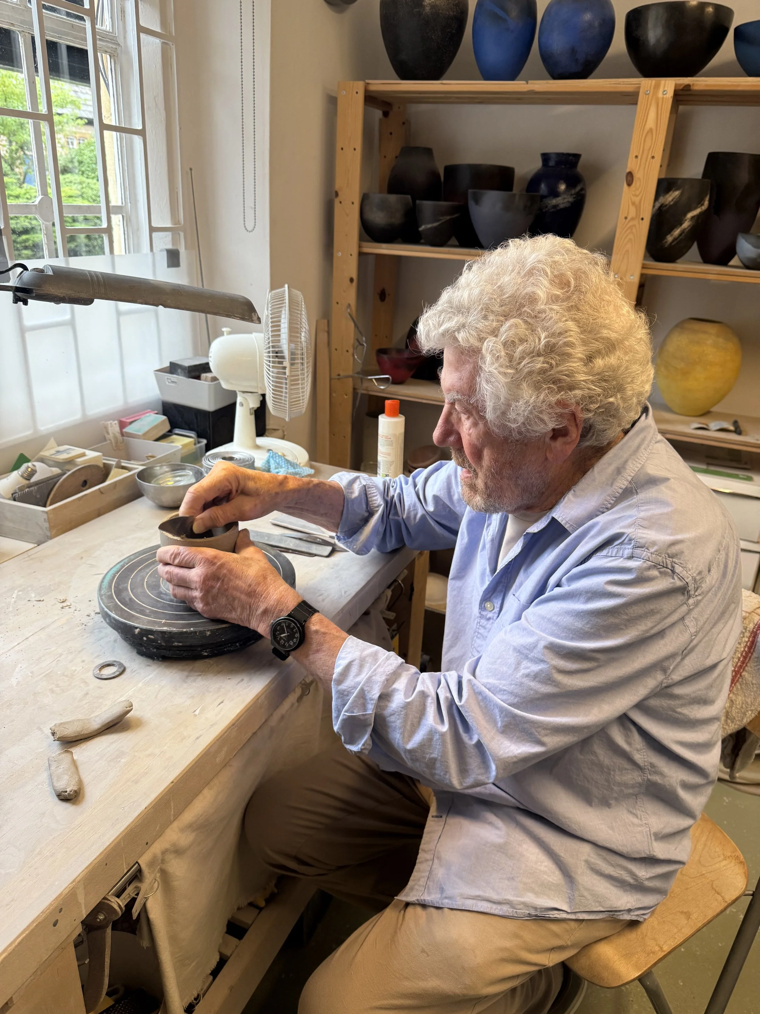 When completed, Allan enjoys the interaction that occurs when different pots are placed together. The fact that pots “speak” to each other. Moved by the pottery of Ancient Korea and Sub-Saharan Africa, where he grew up, Allan aims to create an upward motion from the constructed clay, rising from a narrow base. Colour is generally understated and integral to the pot form, whether by additions of oxides and stains to the clay body, or by way of incised and inlaid lines and scratches. More recently, he has been experimenting with colour, using oxides and stains in an understated way so that the surface decoration is integrated with the pot form.