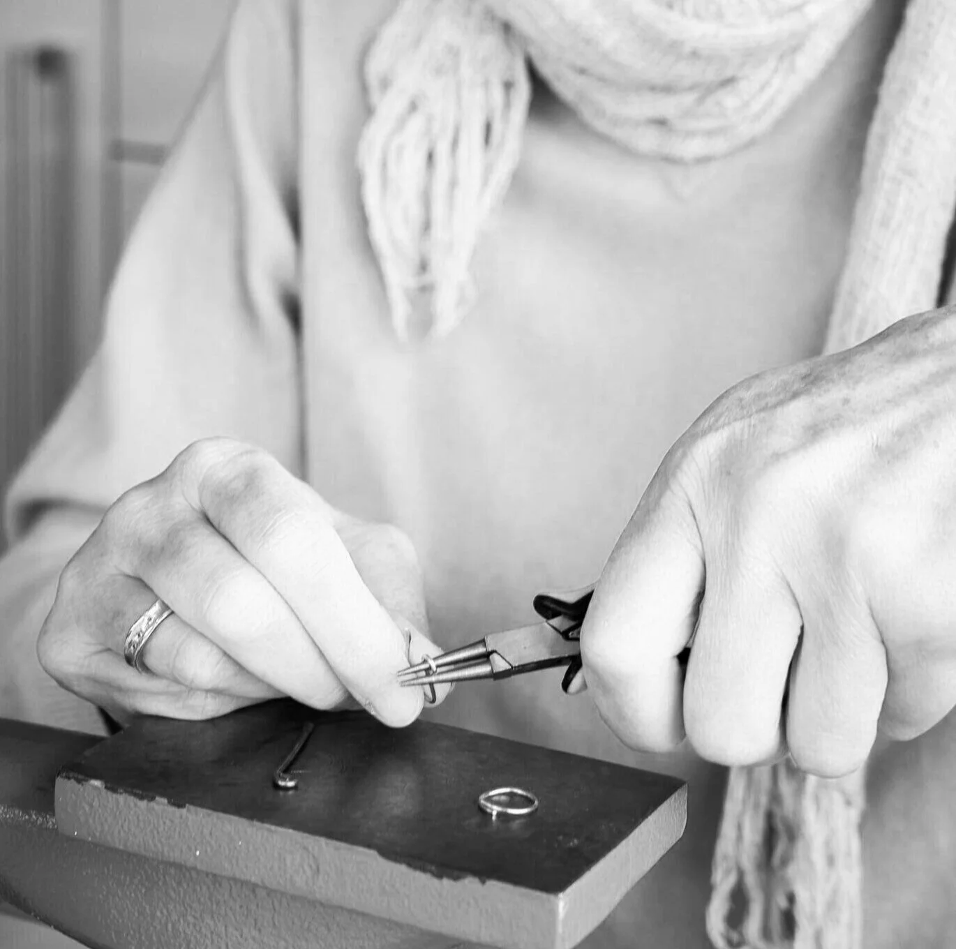 Melissa’s process for creating and designing jewellery begins with an idea. That idea comes from either the shape, colour or markings on the stones she is working with. Placing them in different configurations can create an outline for a piece and when she is happy with the result she will put it together. It is then Melissa might decide what else to add – maybe a hammered metal shape, or a series of shapes, or possibly an antique brooch or artefact. There is always a delightful surprise when serendipity occurs.