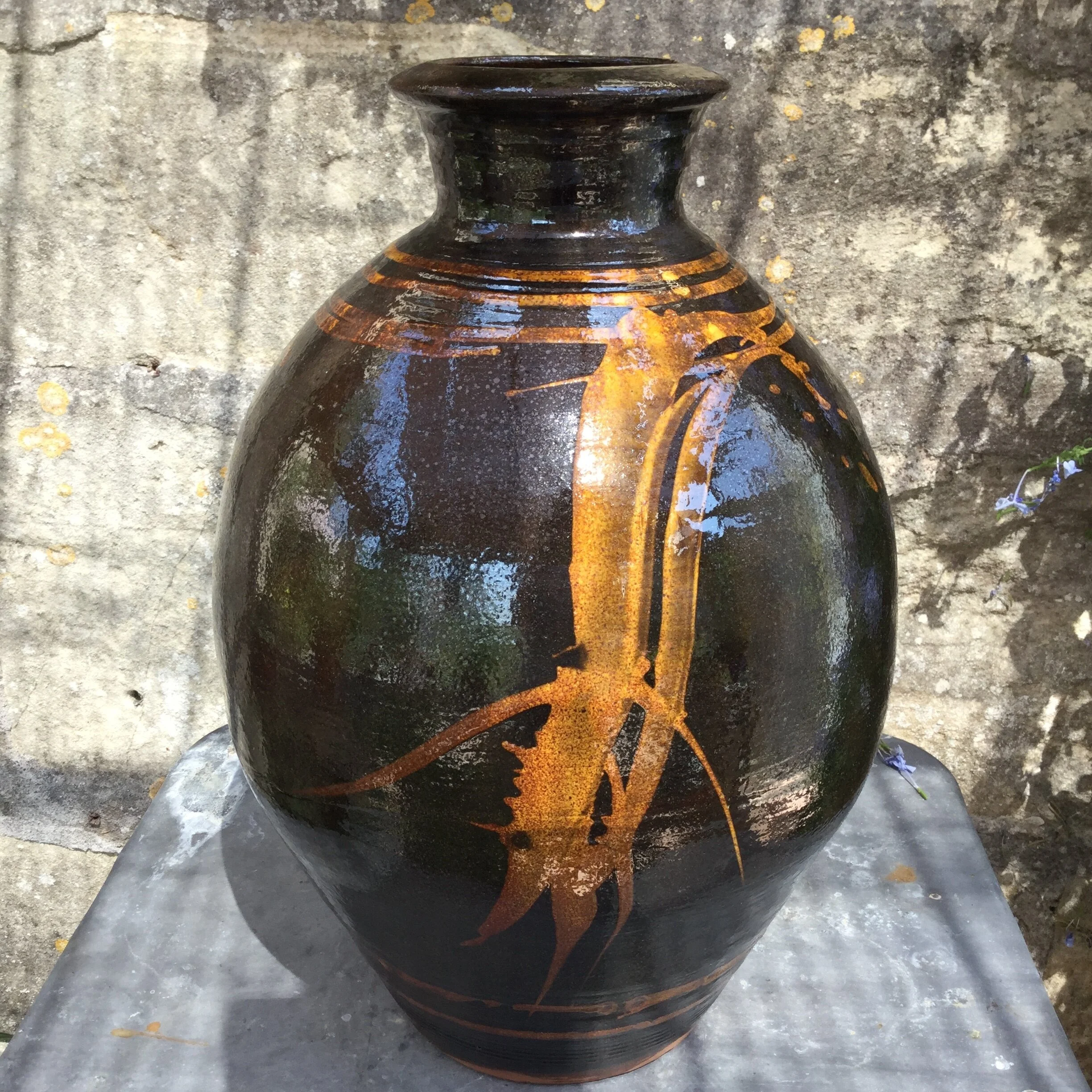 His decorative techniques owe much to the Japanese tradition of painting and calligraphy where a stroke, once started, must be finished. The sophistication of slips, glazes and artistry combines with the rough simplicity of the earthenware to produce functional pots of great beauty.