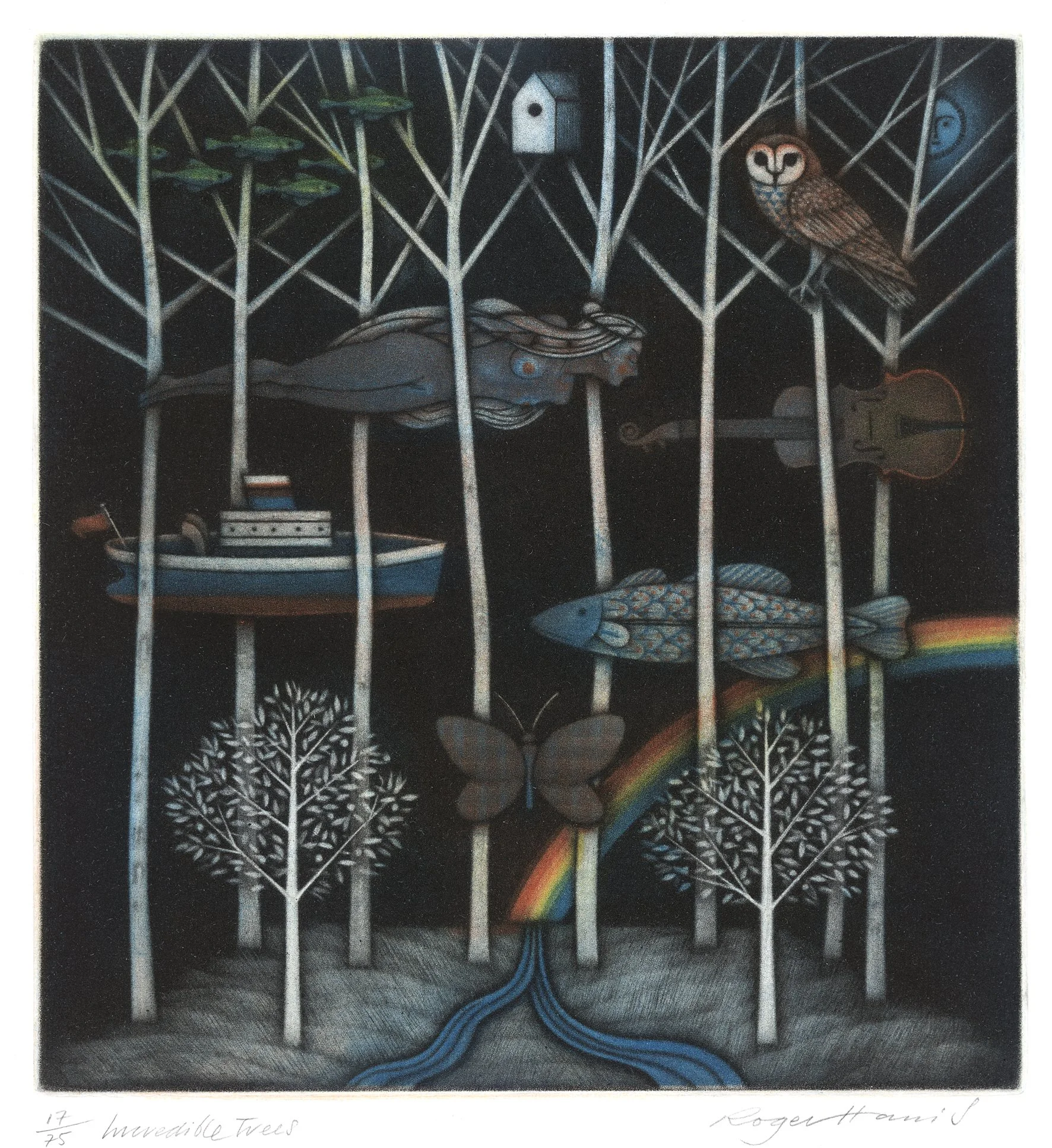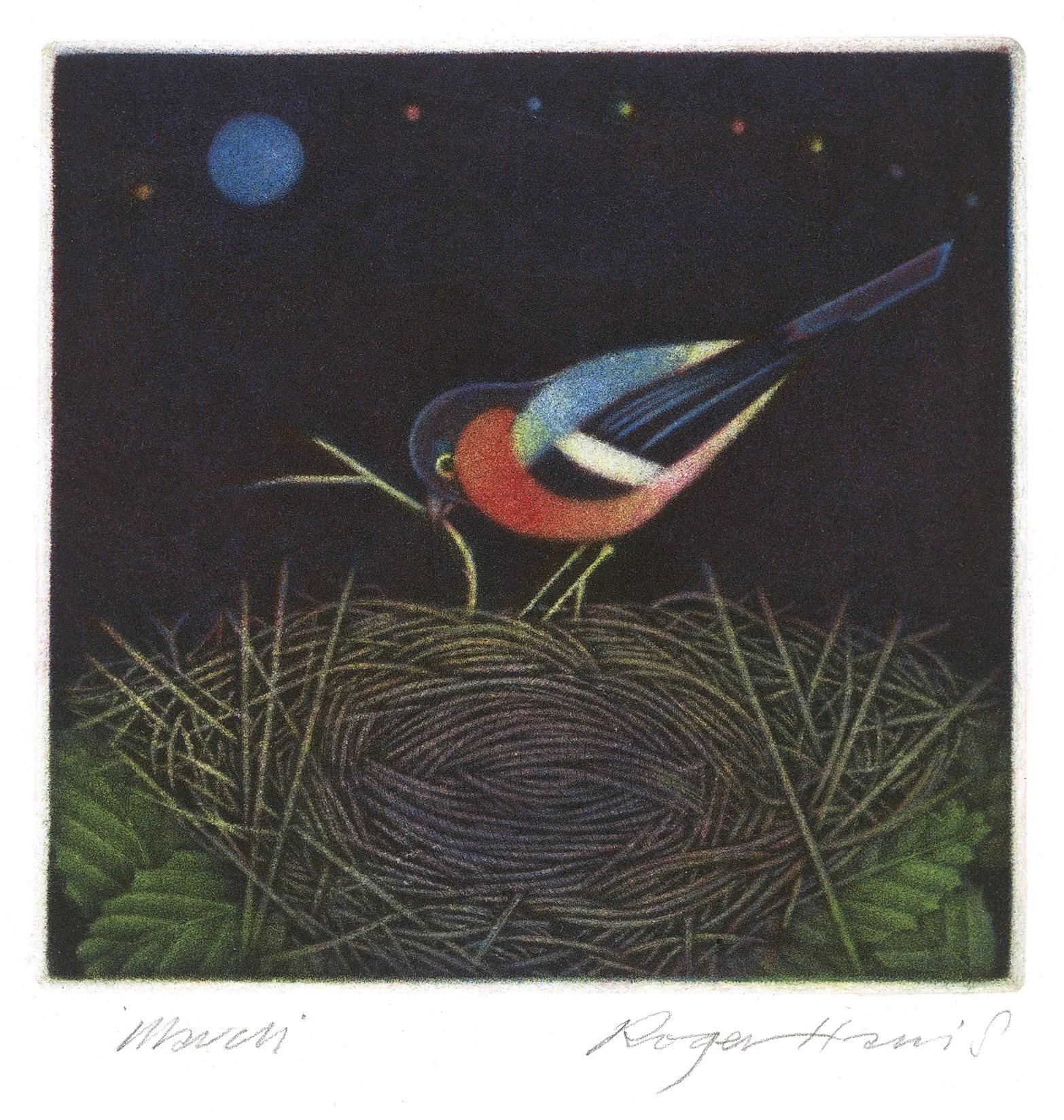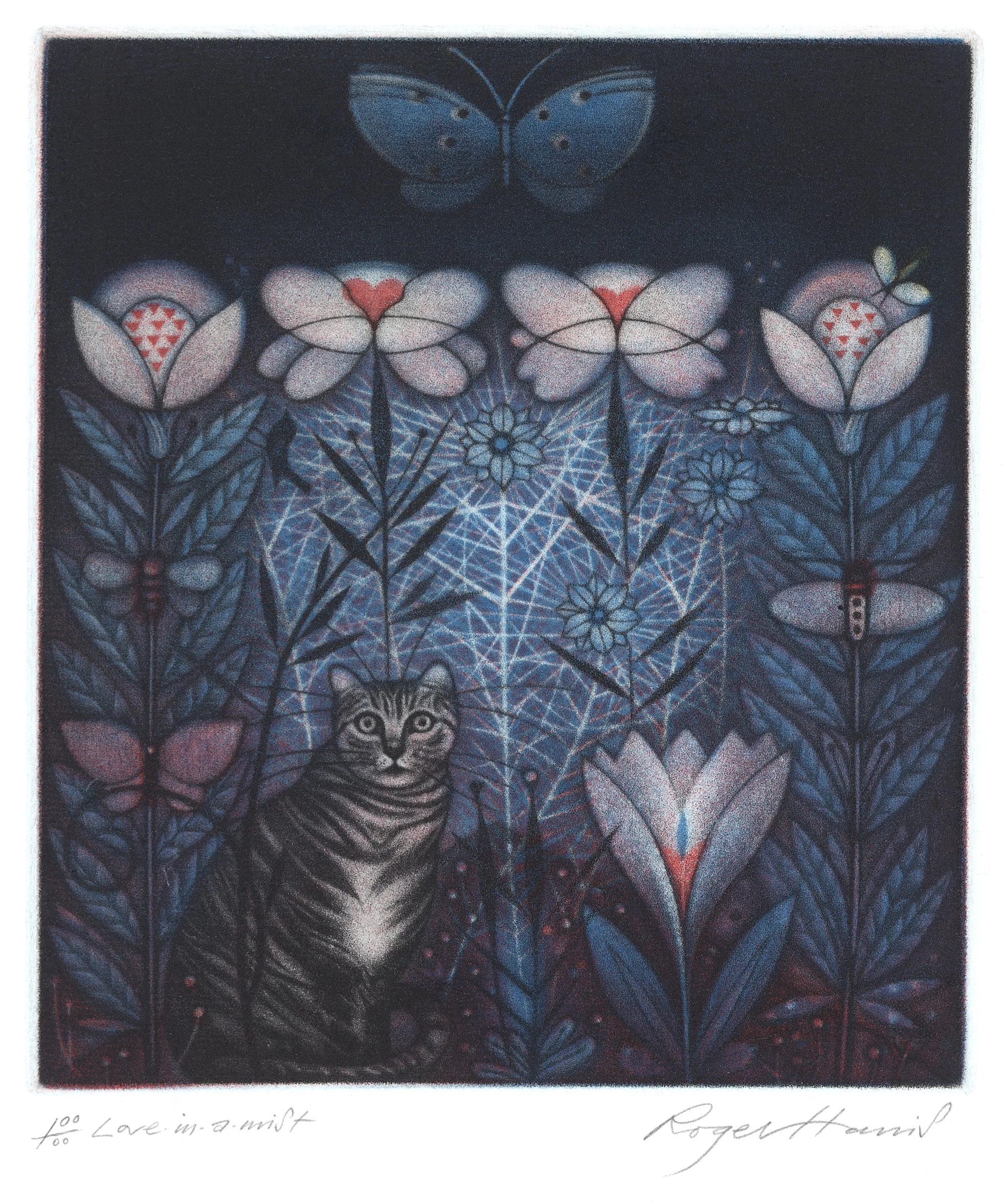 "I have always drawn and I am in awe of artists who have taken a delight in drawing such as Picasso, Hockney, Leonard Baskin, Ben Shahn and the naïve artists, Edward Hicks, Alfred Wallis and Bryan Pearce, for their mastery of line and strong sense of design. I find them all inspirational. For me, mezzotint is the most beautiful form of printmaking with its deep rich surface, and drawn images can in some lights appear and disappear giving a mystery to the work. These are the things I like to explore, to give the viewer many levels of experience.”